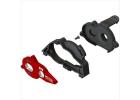 A two-piece molding screwed to the chassis serves as its electronics module, containing a waterproof radio box, servo mount, and ESC tray. The radio receiver mounts inside the radio box for protection from dirt and moisture. The ultra-compact ESC is screwed to the top of the module, allowing quick access to the on/off switch, while the servo mounts to the side. All three components can be removed together, quickly and easily.